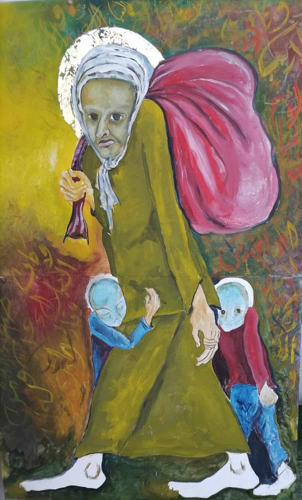 المقابل كنت أبيع لوحاتي في المعارض التي أقمتها في عدة عواصم أوروبية مقابل بقرة.. وأيضاً بعت الكثير من اللوحات مقابل خمس خواريف أو أدوات زراعية يحتاجها المهجرين لمشروعهم التنموي أحد لوحاتي التي أخبئها بعتها مقابل جرار زراعي وغيرها من اللوحات التي تساعد المهجرين على استثمار الأراضي وتربية الأبقار والدواجن وطبعاً ريعها لهم..