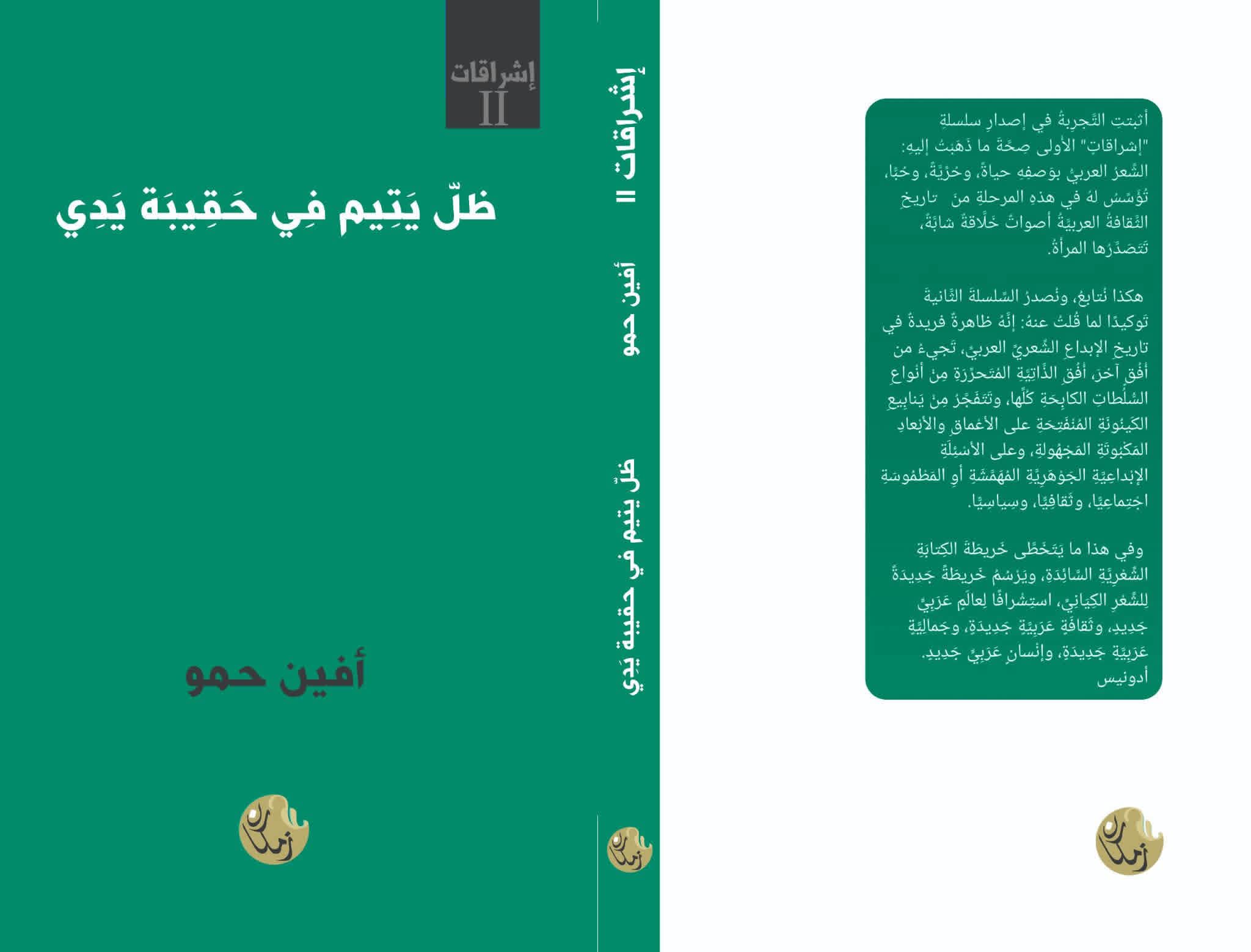 عن دار زمكان في بيروت، وضمن الجزء الثاني من سلسلة إشراقات، صدر ديوان “ظل يتيم في حقيبة يدي” للشاعرة أفين حمو، وهو الكتاب الثالث للشاعرة بعد “عن الذنب الذي في قلبي” و”غناء في الطريق إلى المقبرة”.